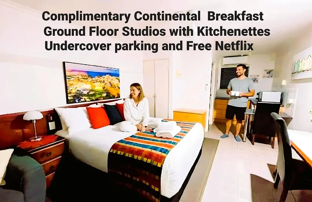 Das Hotel Central Studio Accommodation Gladstone bietet 11 Zimmer in der Nähe von Happy Valley Lakes, in etwa 800 Meter Entfernung. Das Motel bietet den Whirlpool, Spa-Therapie und Barbecue-Grills sowie einen Arbeitstisch und ein Kopiergerät.